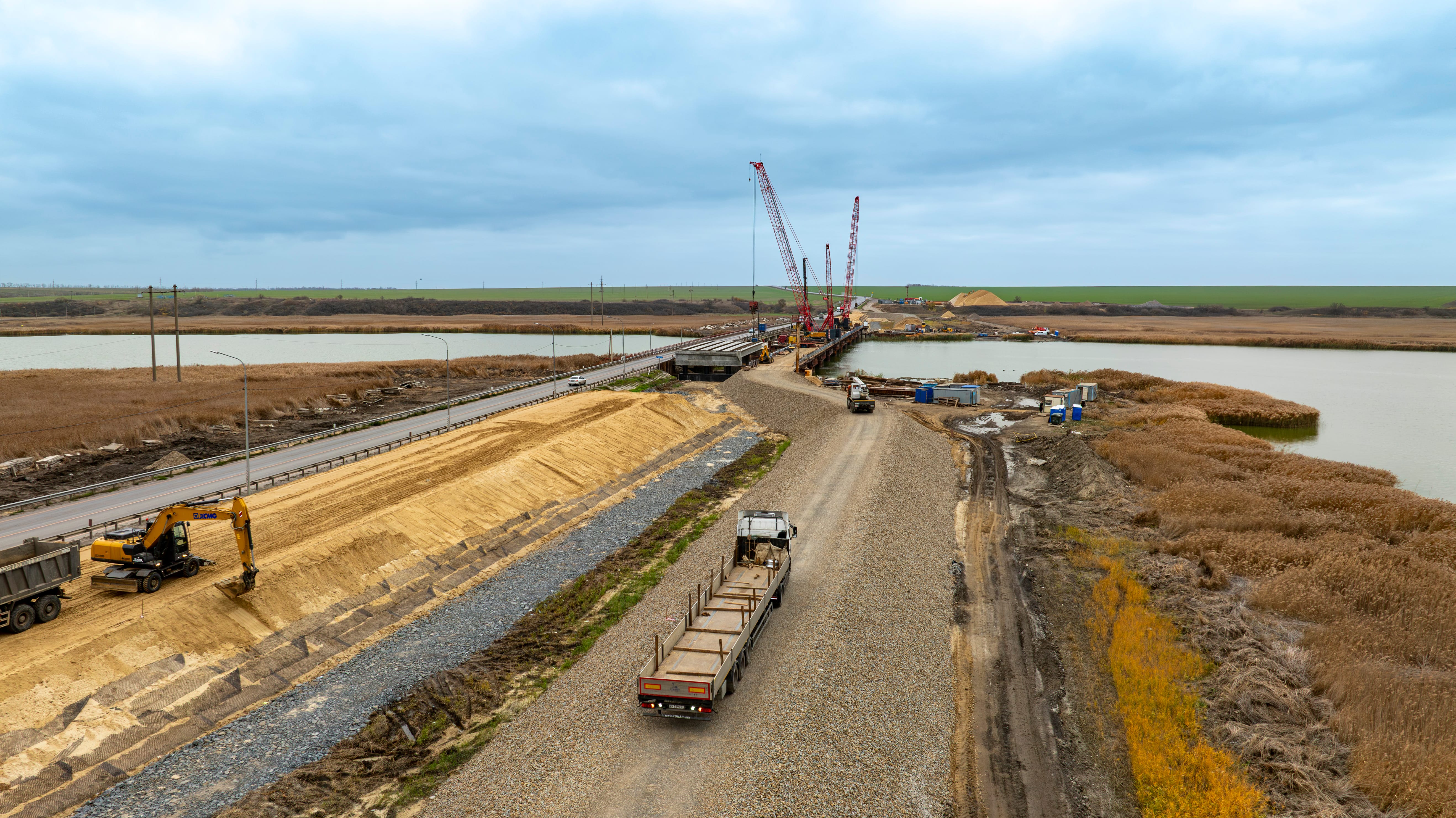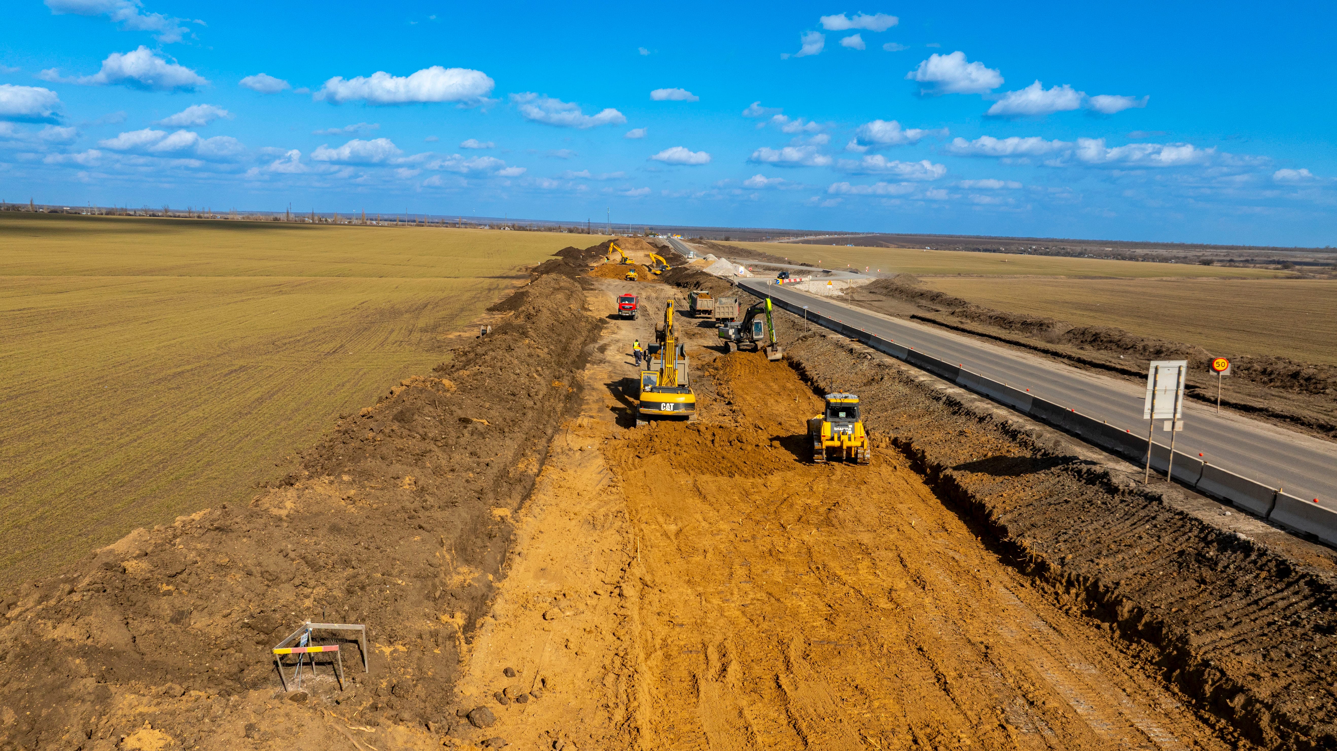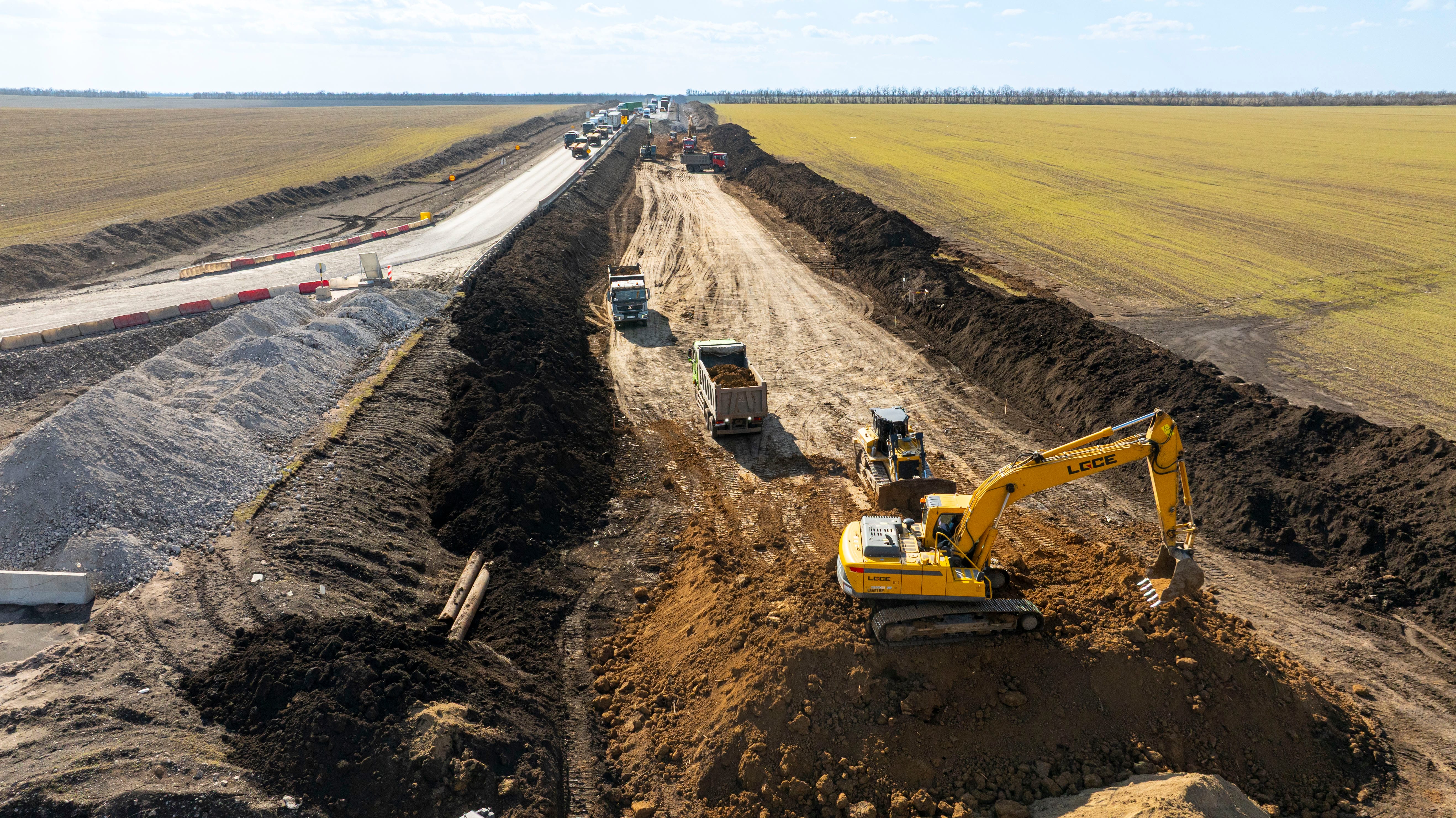 Дорожники уже завершили подготовительный этап и приступили устройству основного хода дороги. Также на отдельных участках ведется укладка асфальтобетонных слоев дорожной одежды будущей четырехполосной дороги.