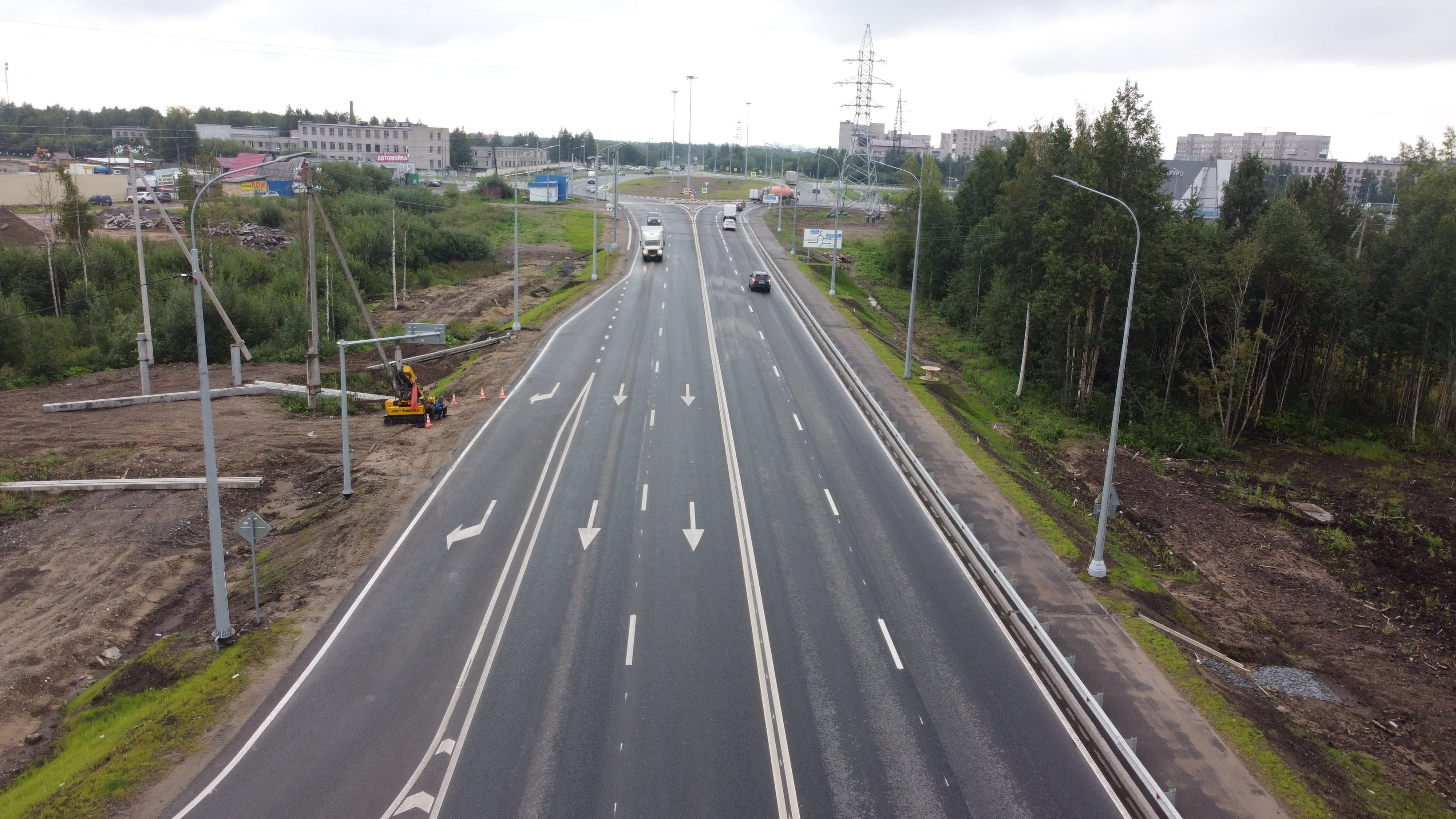На объекте уже выполнено устройство четырех полос движения, строительство трех кольцевых транспортных развязок, обустройство всеми необходимыми техническими элементами: для обеспечения безопасности дорожного движения на участке установлено пять светофорных объектов, 15 км барьерного ограждения, устроено 14,5 км тротуаров и пешеходных дорожек, обустроено 15 пешеходных переходов и 13 автобусных остановок. На всём протяжении участка смонтирована линия наружного электроосвещения.