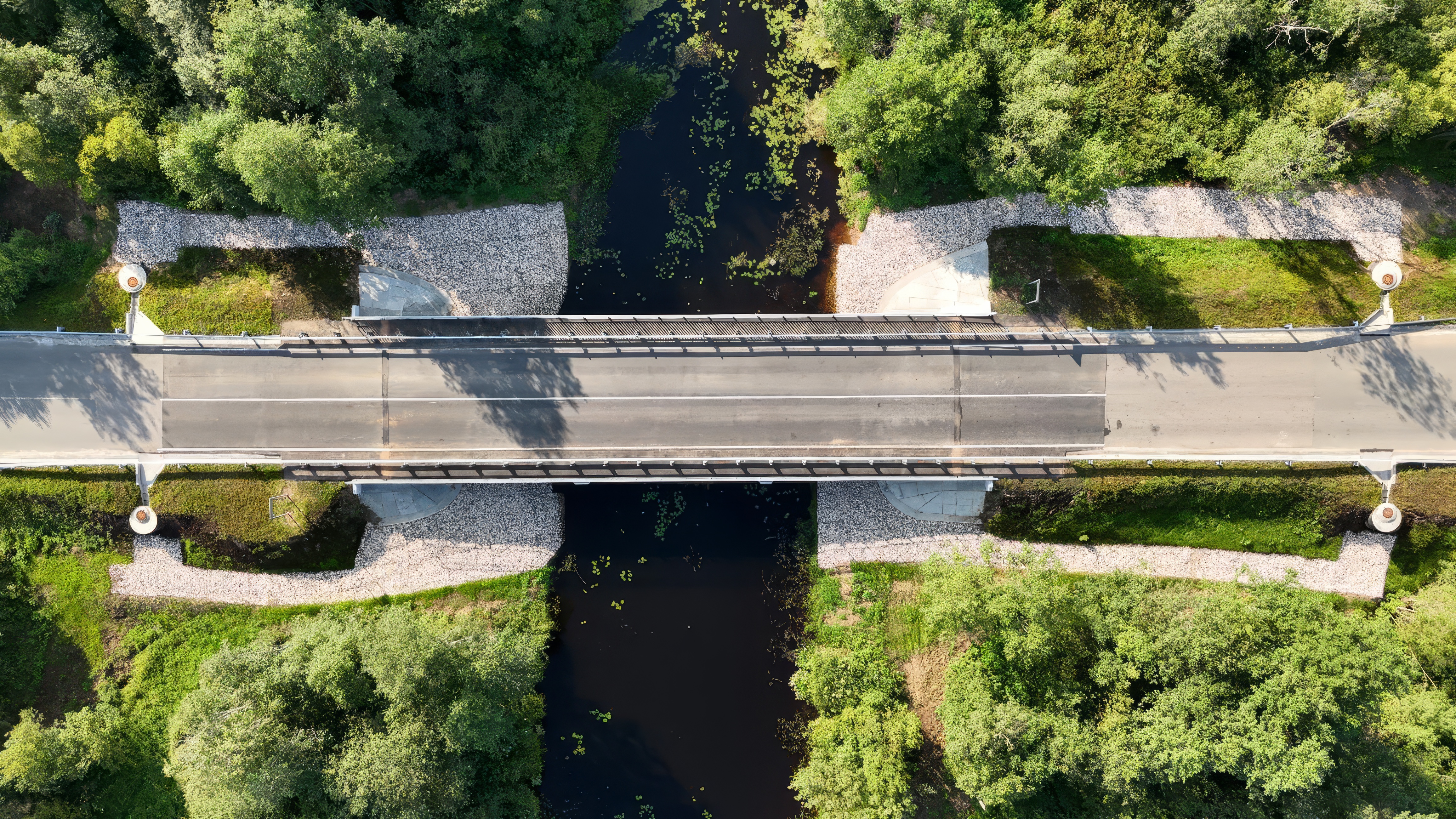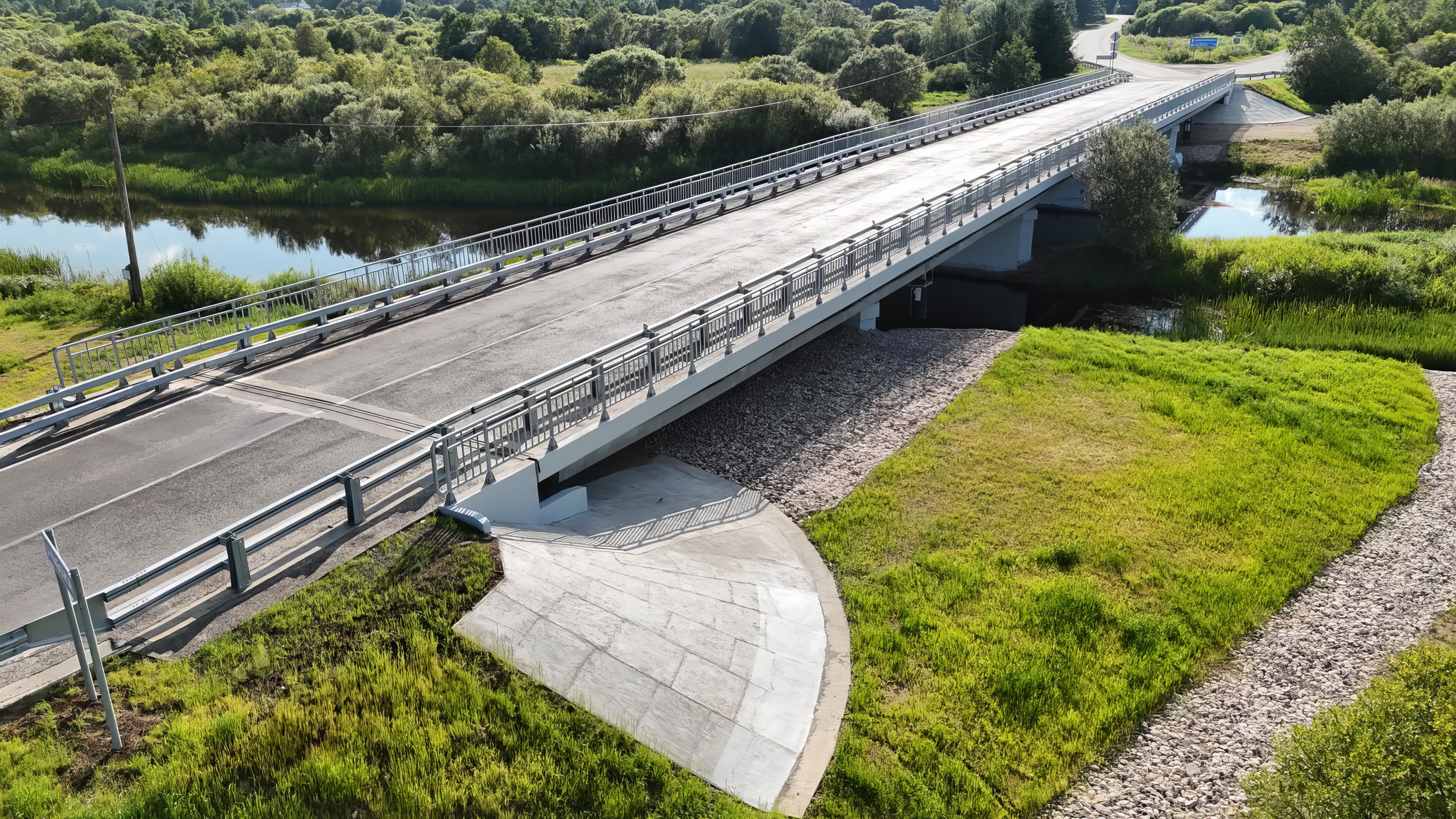 К ремонту мостов приступили в 2024 году. Работы на двух искусственных сооружениях были идентичны. На каждом заменили гидроизоляционный слой мостового полотна, устроили водоотвод, уложили новые слои дорожной одежды, заменили деформационные швы, установили новое металлическое барьерное ограждение и заменили перильное на тротуарах. После получения положительного заключения приемочной комиссии мосты будут официально введены в эксплуатацию.