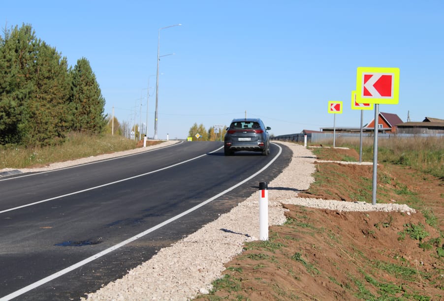 В ходе работ подрядная организация выровняла основание дороги щебнем и укрепила при помощи метода холодной регенерации — это гарантирует долговечность обновленного дорожного полотна. Для обеспечения безопасности пешеходов вдоль дороги построены тротуары протяженностью 1,2 км, отделенные от проезжей части металлическим барьерным ограждением. Трассу и пешеходные дорожки в темное время суток будет освещать современное светодиодное оборудование.
